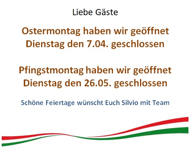 Dienstag bis Sonntag geöffnet, 11:30 bis 22:30 warme Küche